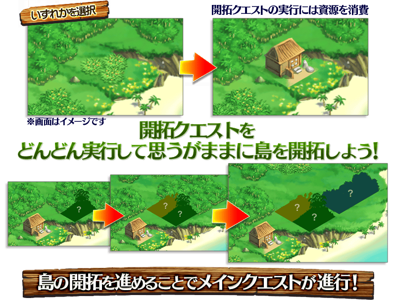 選択式の開拓クエストを進めることで自分だけのオリジナルの島が作れます。