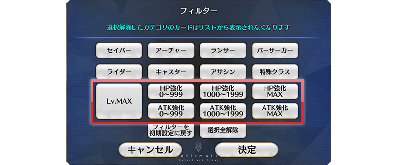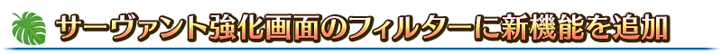 サーヴァント強化画面のフィルター設定に以下の項目を追加します。