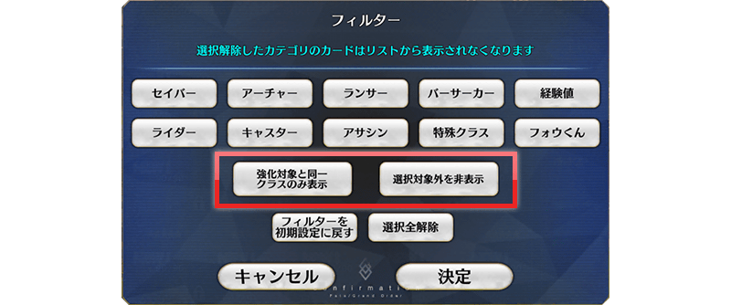 強化対象サーヴァントと同一クラスの素材のみ表示する