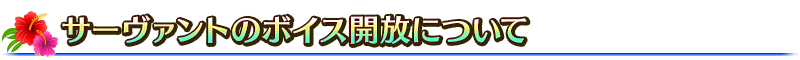 また、イベント終了後にショップボイス以外のイベント関連ボイスをボイスリストに追加させるためには「復刻:夏だ! 海だ! 開拓だ! FGO 2016 Summer カルデアサマーメモリー ~癒やしのホワイトビーチ~ ライト版」のメインクエスト「ライフ・イズ・ビューティフル」をクリアしている必要があります。