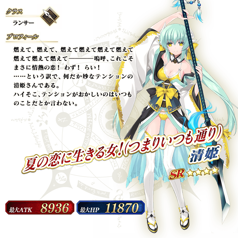 ※「出現確率アップ」とは同レアリティの他のサーヴァントおよび概念礼装より出現確率が高く設定されていることを意味します。