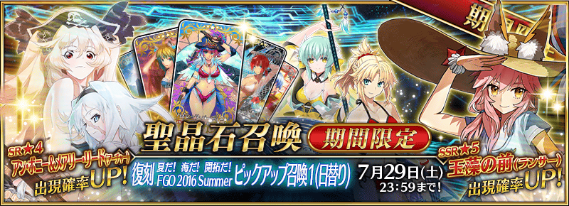 2016年に開催した「夏だ! 海だ! 開拓だ! FGO 2016 Summer ピックアップ召喚1」の内容を一部変更し復刻いたします。