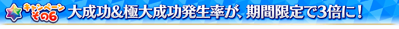 サーヴァントおよび概念礼装の強化を行った際に、大成功(経験値2倍ボーナス) ・極大成功(経験値3倍ボーナス)が発生する確率が期間限定で3倍になります。