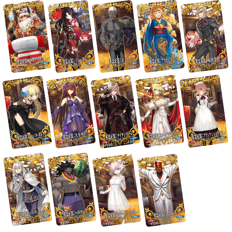※期間限定概念礼装「英霊正装」の種類はメインクエストのクリア状況によって変化いたしますのでご注意ください。