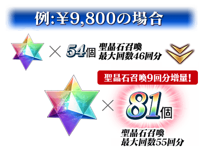 ※リニューアル直後は購入時に表示されるダイアログの商品名が切り替わっていない場合がございますが、オマケでもらえる無償分の聖晶石の増量は反映されます。