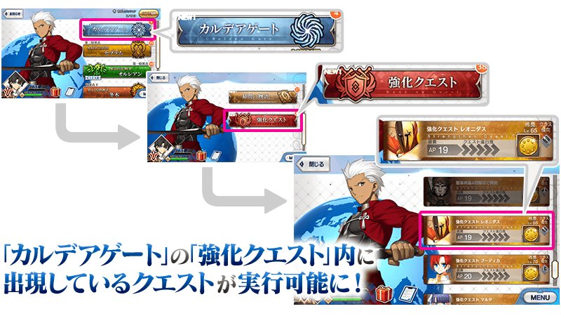 ※強化クエストが開放済みのサーヴァントであっても、対象となるサーヴァントを所持していない場合、クエストは出現しません。