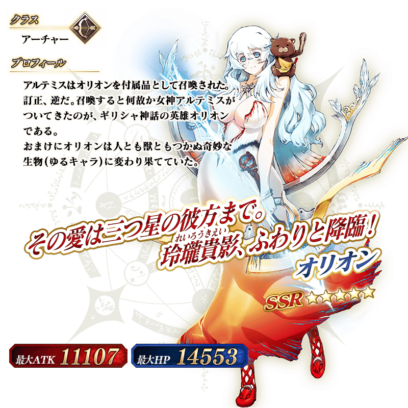 ※「出現確率アップ」とは同レアリティの他のサーヴァントおよび概念礼装より出現確率が高く設定されていることを意味します。