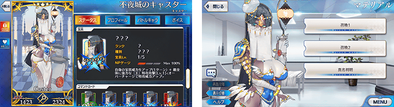 なお、召喚時の演出や、バトル時のボイスなどについては、真名の判明前と判明後では異なるものが再生されます。