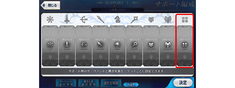 サポート編成画面に、新たなクラス枠として「EXTRA」を追加します。