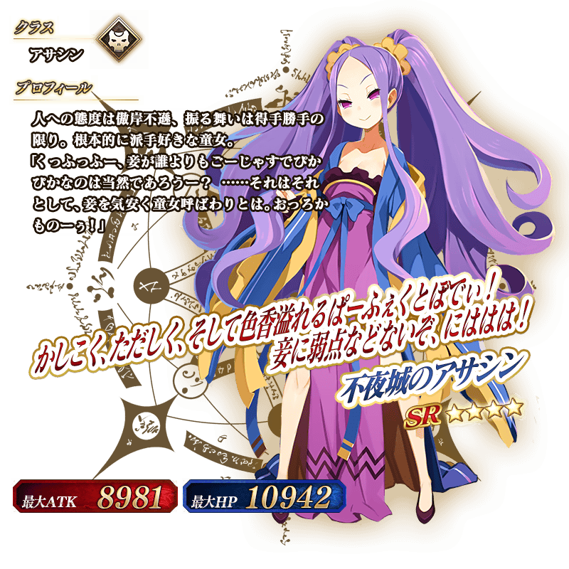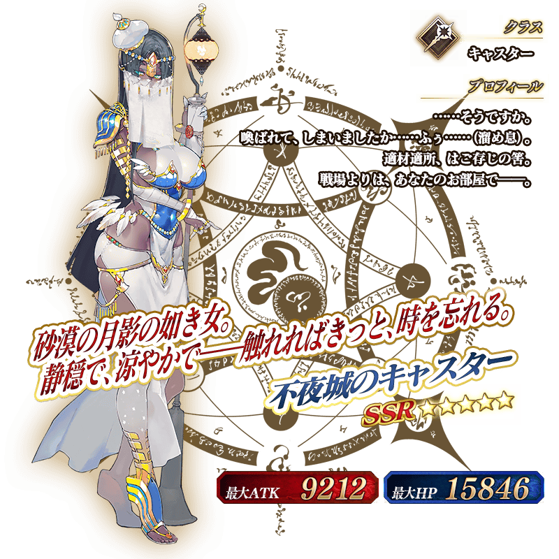 「亜種特異点Ⅱ 伝承地底世界 アガルタ アガルタの女」で活躍するサーヴァント「★5(SSR)不夜城のキャスター」「★4(SR)不夜城のアサシン」「★4(SR)エルドラドのバーサーカー」が新登場いたします!