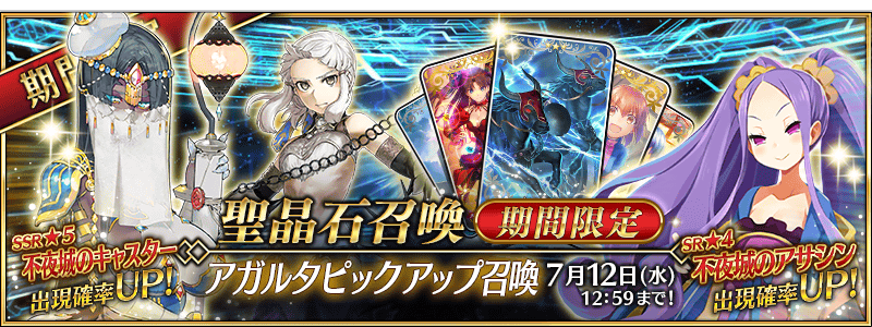 ※「出現確率アップ」とは同レアリティの他のサーヴァントより出現確率が高く設定されていることを意味します。