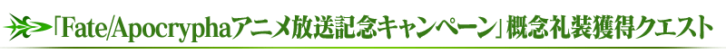 ※「Fate/Apocryphaアニメ放送記念キャンペーン」概念礼装獲得クエストにシナリオはありませんのでご注意ください。