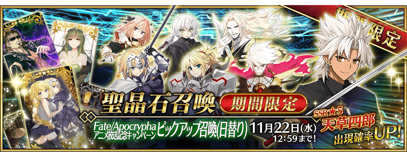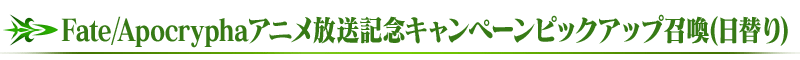 ◆「Fate/Apocryphaアニメ放送記念キャンペーンピックアップ召喚(日替り)」期間◆