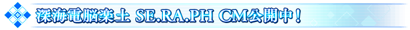 Fate/Grand Order公式サイト内トップページおよびギャラリーにて、深海電脳楽土 SE.RA.PHのTVCMを公開しております。