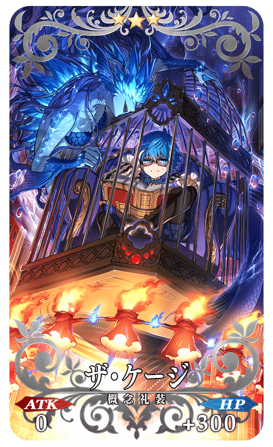 ★★★R ザ・ケージ ATK 0 HP 300(最大:1500) スキル 自身のNPを10%チャージした状態でバトルを開始する&被ダメージ時のNP獲得量を15%アップ + TYPEⅠ系のエネミーの追加出現率を20%アップ【『Fate/EXTRA CCC スペシャルイベント』イベント期間限定】