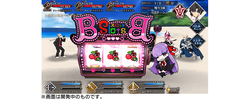 BBスロットはランダムで揃った絵柄に応じて、バトルにさまざまな効果が付与されます。