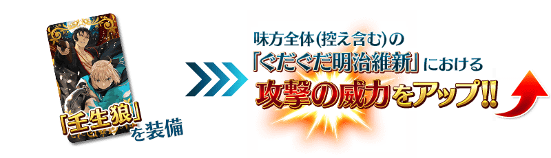 対象のサーヴァントは、「ぐだぐだ明治維新」クエストにおける攻撃の威力がアップします!