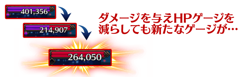 ※一度の攻撃によって、HPゲージを超過したダメージは次回以降のHPゲージには反映されません。