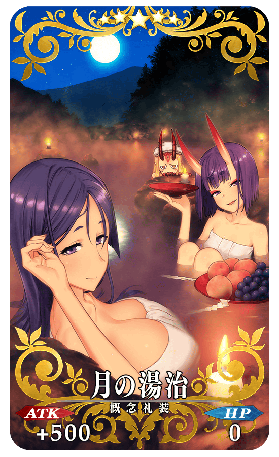また、ダメージポイント報酬にて獲得できるイベント限定概念礼装「月の湯治」を装備すると、「復刻:天魔御伽草子 鬼ヶ島 ライト版」における味方全体<控え含む>の攻撃の威力がアップします。