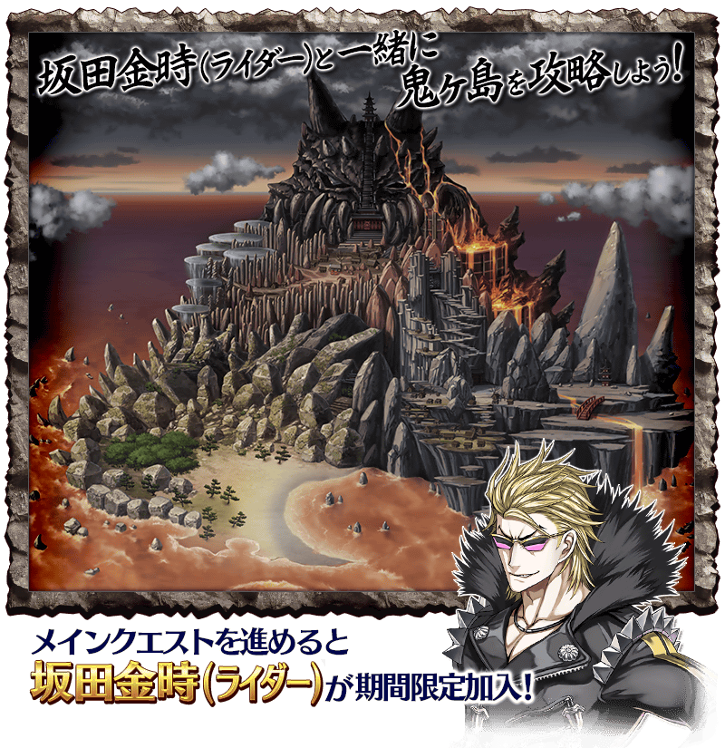 メインクエストを進め、鬼ヶ島を攻略し、坂田金時(ライダー)を手に入れましょう!