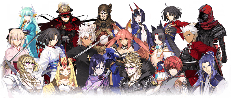 | アサシン | エミヤ〔アサシン〕、佐々木小次郎、酒呑童子、風魔小太郎、両儀式 |