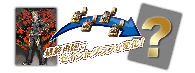 イベント期間中のダメージポイント報酬でしか手に入らない「ゴールデンベアライター」を使って、霊基再臨を4回繰り返すと、セイントグラフに変化が!