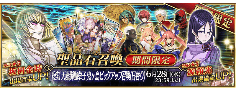 ※源頼光、坂田金時はピックアップ期間終了後、ストーリー召喚には追加されません。