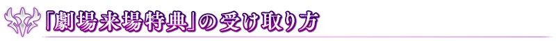※「劇場来場特典」の概念礼装を受け取る際は、必ず上映開始前または上映終了後に、チケット売り場や休憩スペースなどで行ってください。