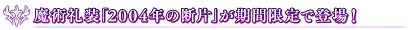 開催期間中、カルデアゲート内に出現する「魔術礼装クエスト・2004年の断片」をクリアすることで、新規魔術礼装「2004年の断片」を入手することができます。
