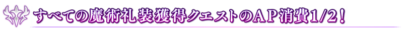 開催期間中、カルデアゲート内に出現しているすべての魔術礼装獲得クエストのAP消費量が1/2となります。