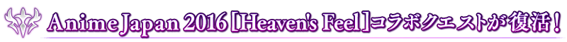 AnimeJapan 2016[Heaven's Feel]コラボクエストをクリアすると概念礼装[Heaven's Feel]を獲得できます。