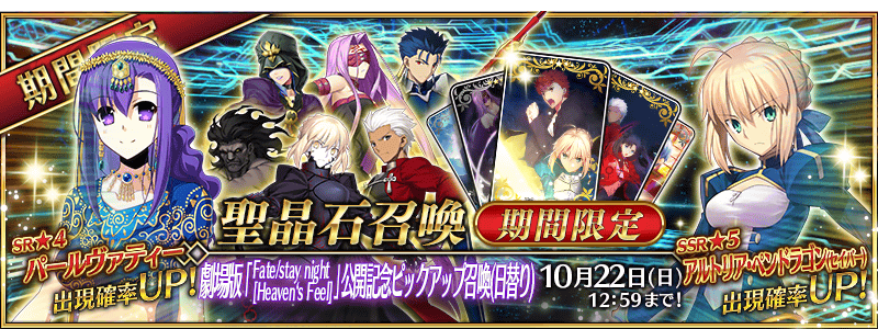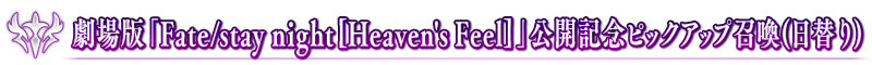 ◆劇場版「Fate/stay night [Heaven's Feel]」公開記念ピックアップ召喚(日替り)期間◆