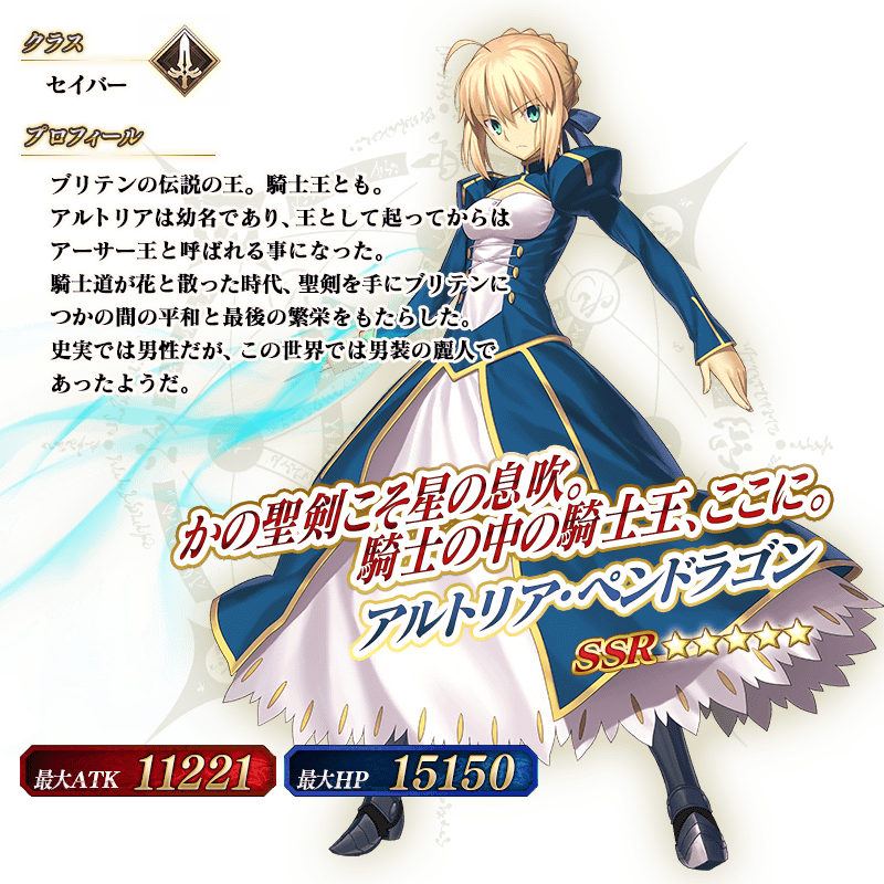 | 10月13日(金) 0:00~23:59 | パールヴァティー アルトリア・ペンドラゴン〔オルタ〕(セイバー) |