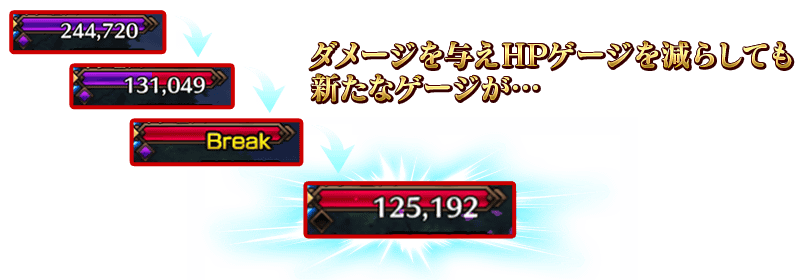 ※一度の攻撃によって、HPゲージを超過したダメージは次回以降のHPゲージには反映されません。