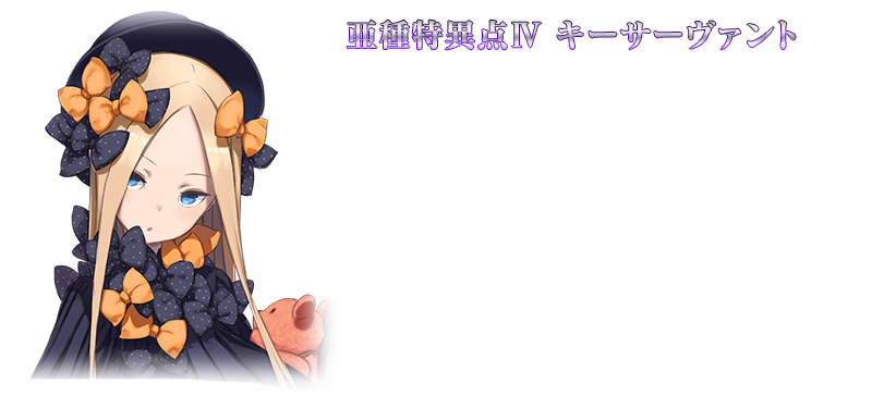 ※「亜種特異点Ⅰ 悪性隔絶魔境 新宿 新宿幻霊事件」、「亜種特異点Ⅱ 伝承地底世界 アガルタ アガルタの女」、「亜種特異点Ⅲ 屍山血河舞台 下総国 英霊剣豪七番勝負」をクリアしている必要はありません。