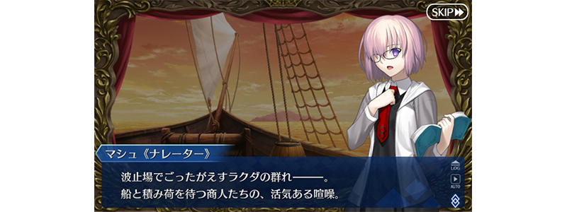 亜種特異点Ⅳではメインクエスト中のアドベンチャーパートに専用のフレームが表示される「劇中劇」が展開されます。