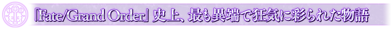 「戦闘行為を禁じられた、法に守られた町での、ミステリアスな七日間。」というフレーズのもと、「Fate/Grand Order」史上、最も異端で狂気に彩られたストーリーが展開されます。