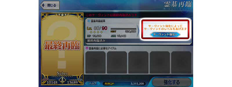 ④サーヴァントを最終再臨した際に、強化画面に移動できるボタンを追加