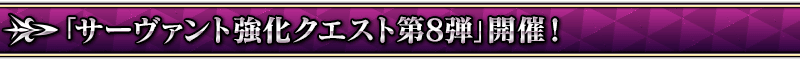 サーヴァントの能力が強化される特別なクエスト「サーヴァント強化クエスト第8弾」を開催いたします。