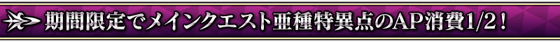 メインクエスト亜種特異点(ⅠからⅣまで)のAP消費量が期間限定で1/2になります!
