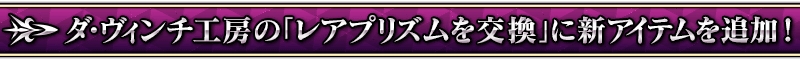 ダ・ヴィンチ工房の「レアプリズムを交換」に、下記の新アイテムを追加いたします。