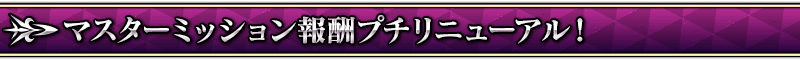 毎週更新される常設ミッション「マスターミッション」にて獲得できる聖晶片を、2個から3個に増量し、キャンペーン終了後も恒常化いたします。