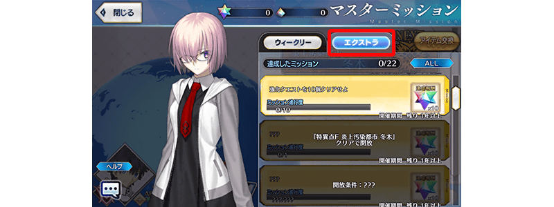 マスターミッション(エクストラミッション)に、「強化クエスト」のクリア回数で達成できる新たなミッションを追加いたします。