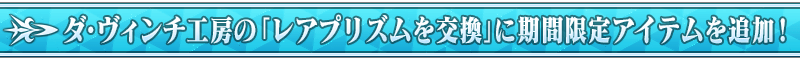 期間限定でダ・ヴィンチ工房の「レアプリズムを交換」に、下記のアイテムを追加いたします。 ◆交換期間◆ |
