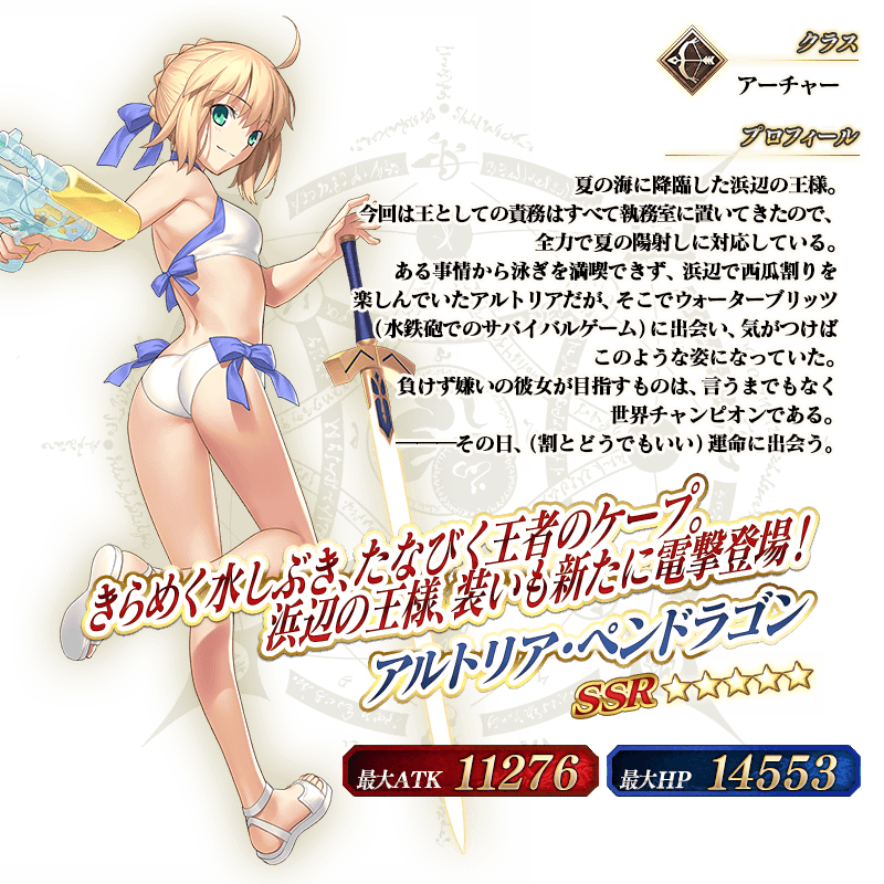 「★4(SR)マリー・アントワネット(キャスター)」「★4(SR)マルタ(ルーラー)」を日替りでピックアップ、「★5(SSR)アルトリア・ペンドラゴン(アーチャー)」を常時ピックアップいたします!