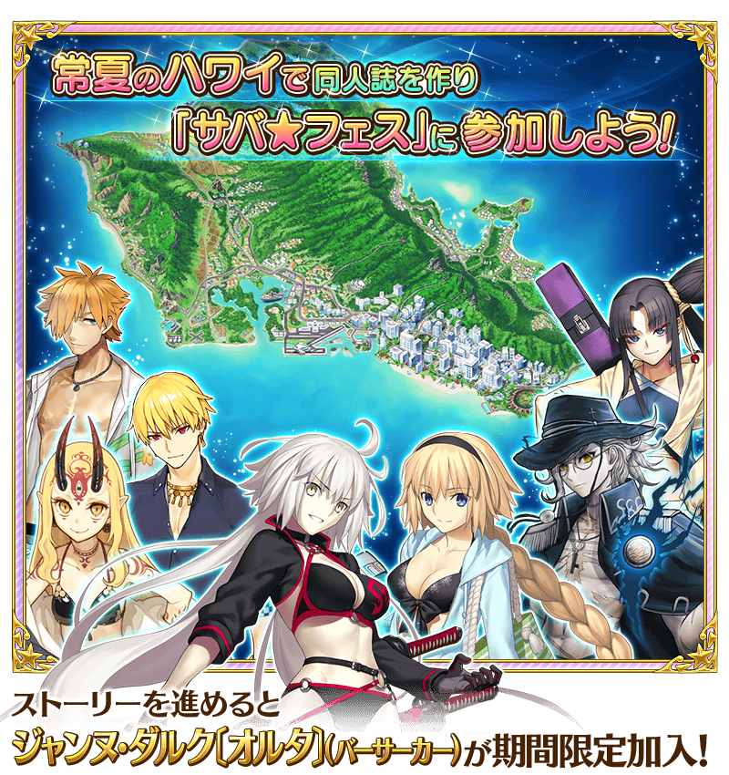 ※期間限定イベント「サーヴァント・サマー・フェスティバル!」は、2016年夏、2017年夏のイベントと異なり、前後半に分けた二部構成のイベントではなく、一部構成の大ボリュームでお届けします!