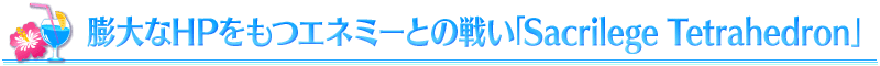 メインシナリオ後半では、何度も戦いを挑んで膨大なHPを減らしていく特殊な形式でのバトル「Sacrilege Tetrahedron」が発生します。