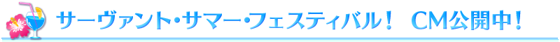 Fate/Grand Order公式サイト内トップページおよびギャラリーにて、期間限定イベント「サーヴァント・サマー・フェスティバル!」のTVCMを公開しております。あわせてご確認ください。