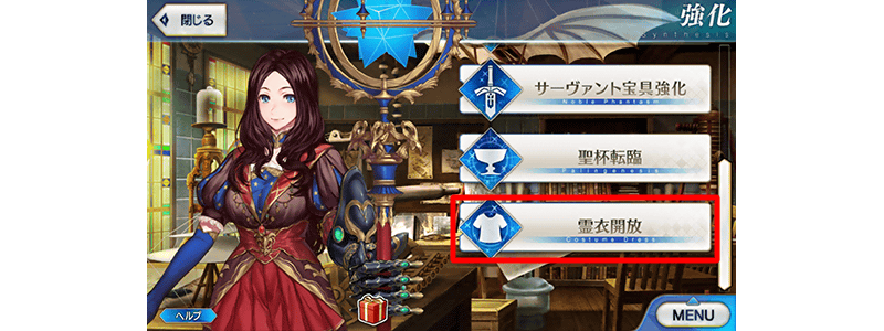 「霊衣開放」は強化画面より選択可能となります。