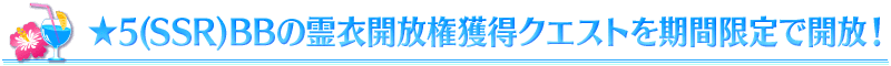 期間限定イベント「サーヴァント・サマー・フェスティバル!」のクエスト報酬として、「★5(SSR)BB」の霊衣開放権が2種類登場!